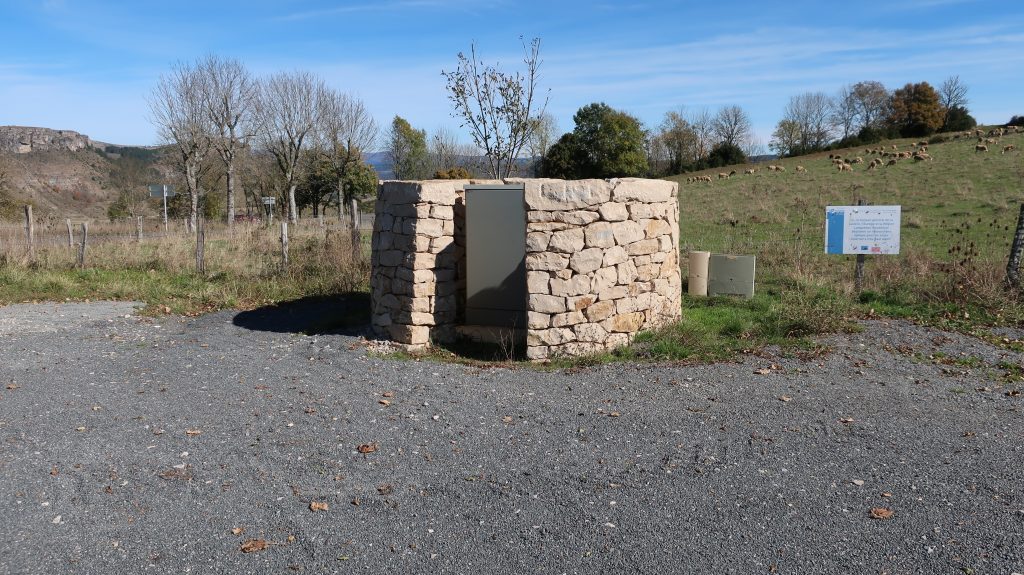 Création d’un ouvrage contemporain pour habiller un tableau électrique en bordure du Parc national des Cévennes. En sous-traitance pour Constructel, entreprise chargée d’installer la fibre en Lozère. En calcaire de la S.O.M.A.T.R.A à Marvejols.