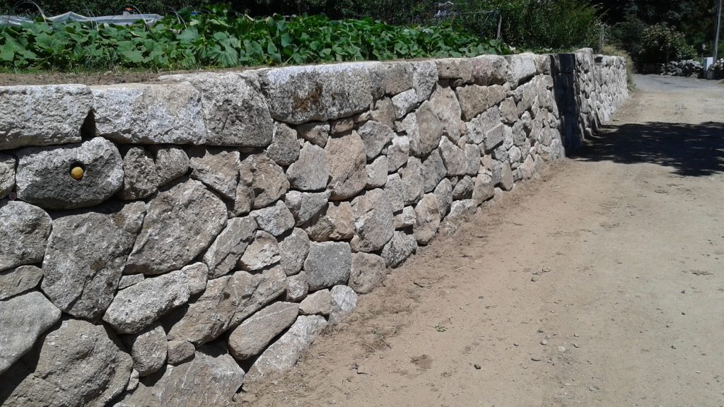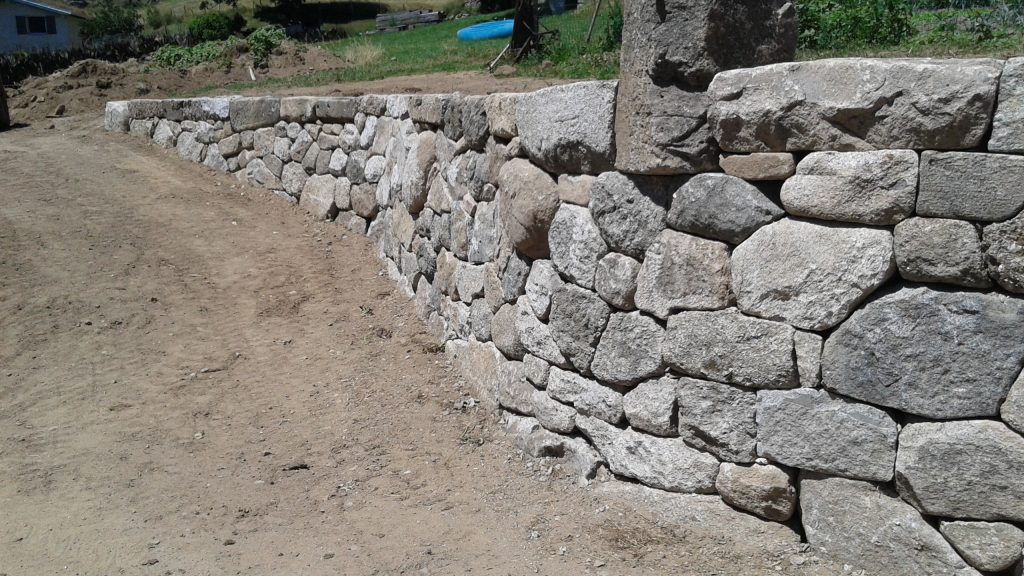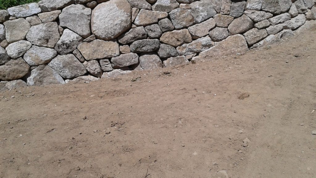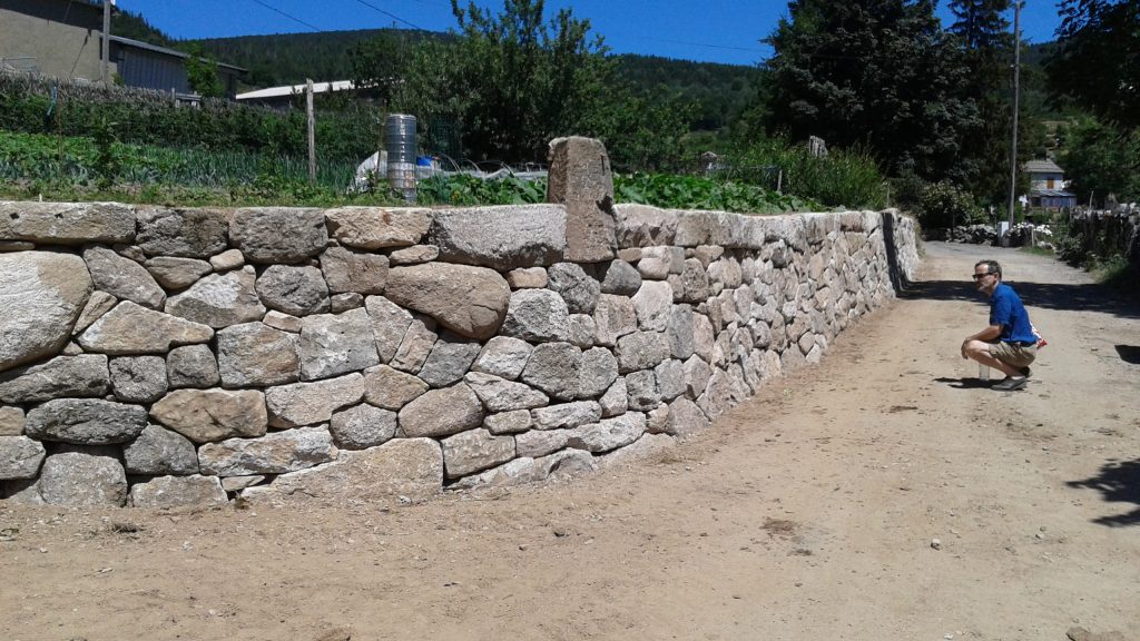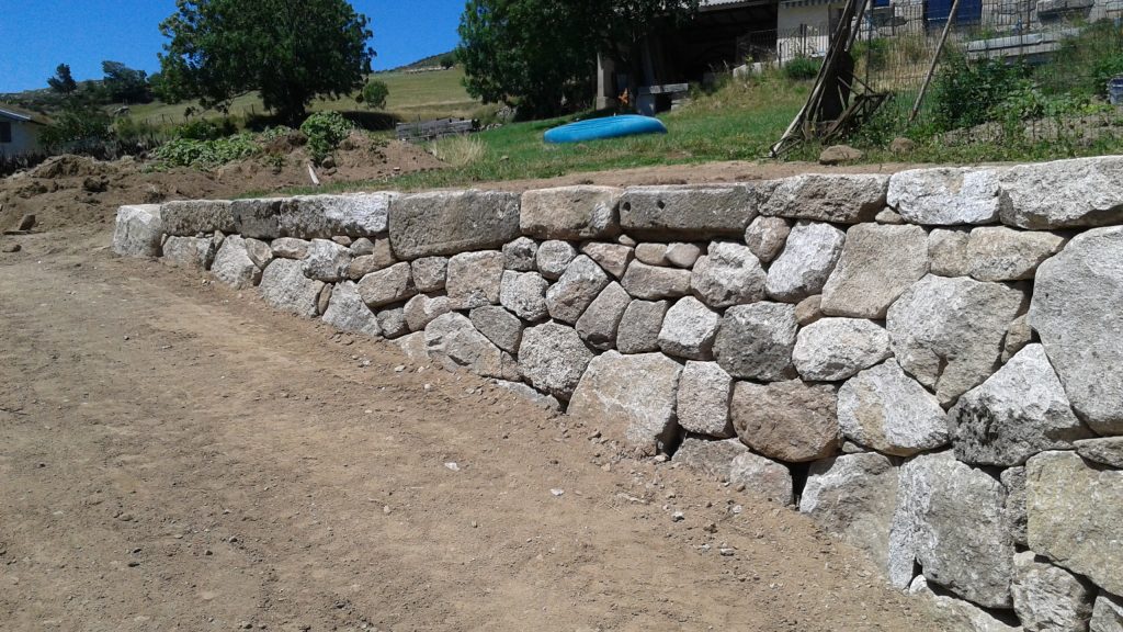 FINIELS (48) en granit local, 2018. Réfection d’un mur de soutènement et création d’une rampe pour tracteur pour M.P et J.G.