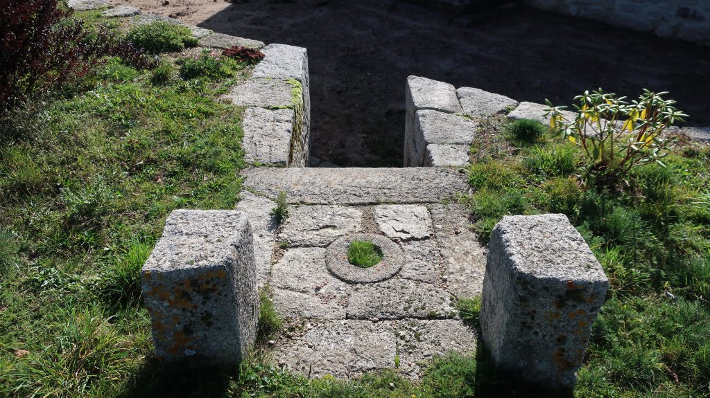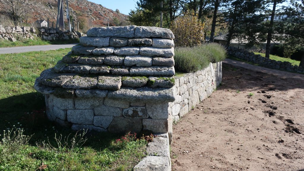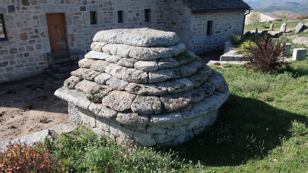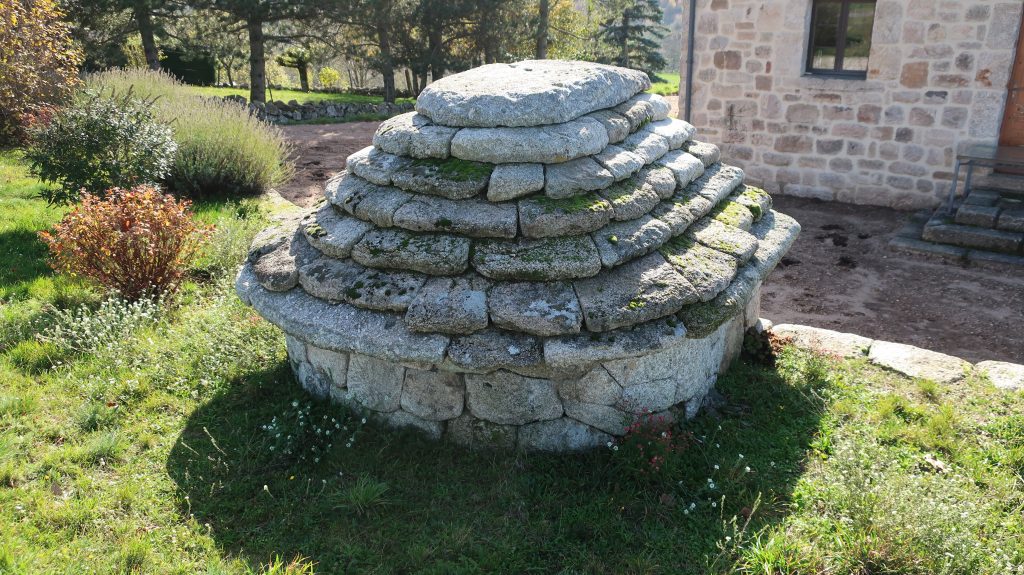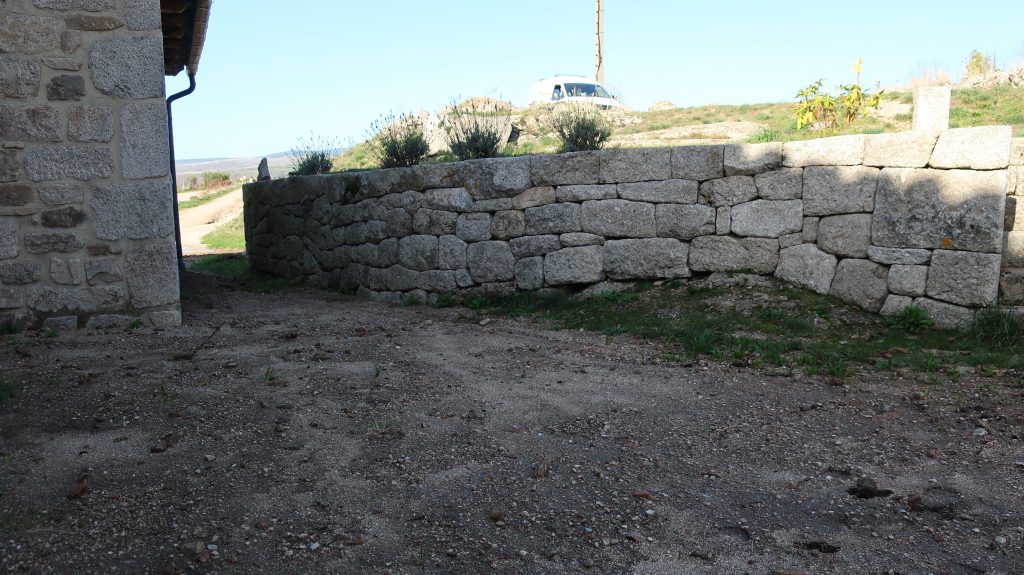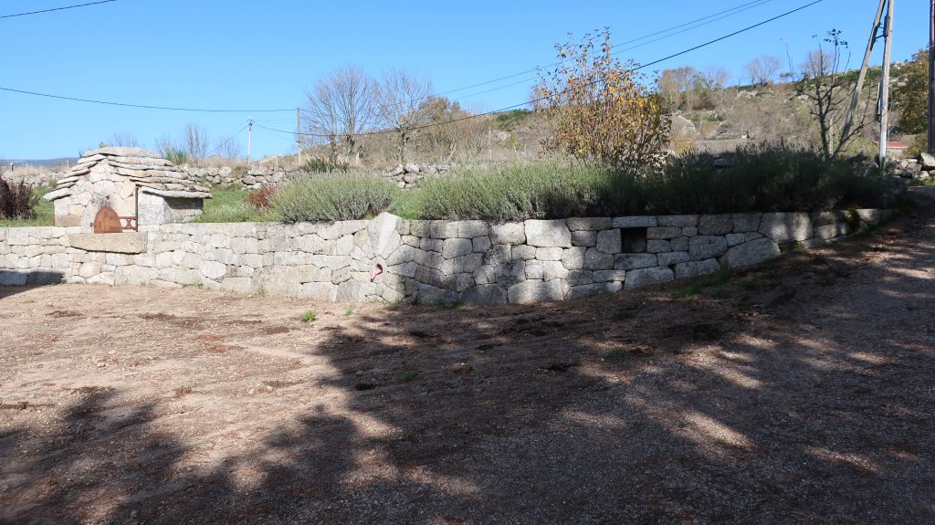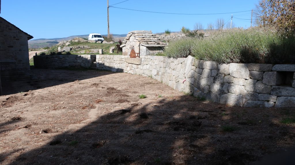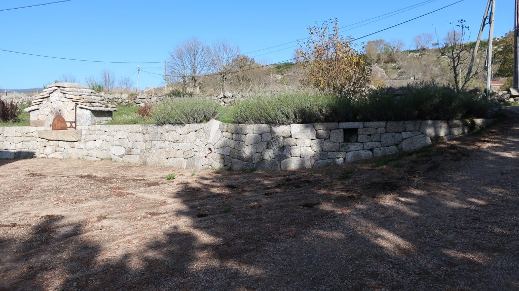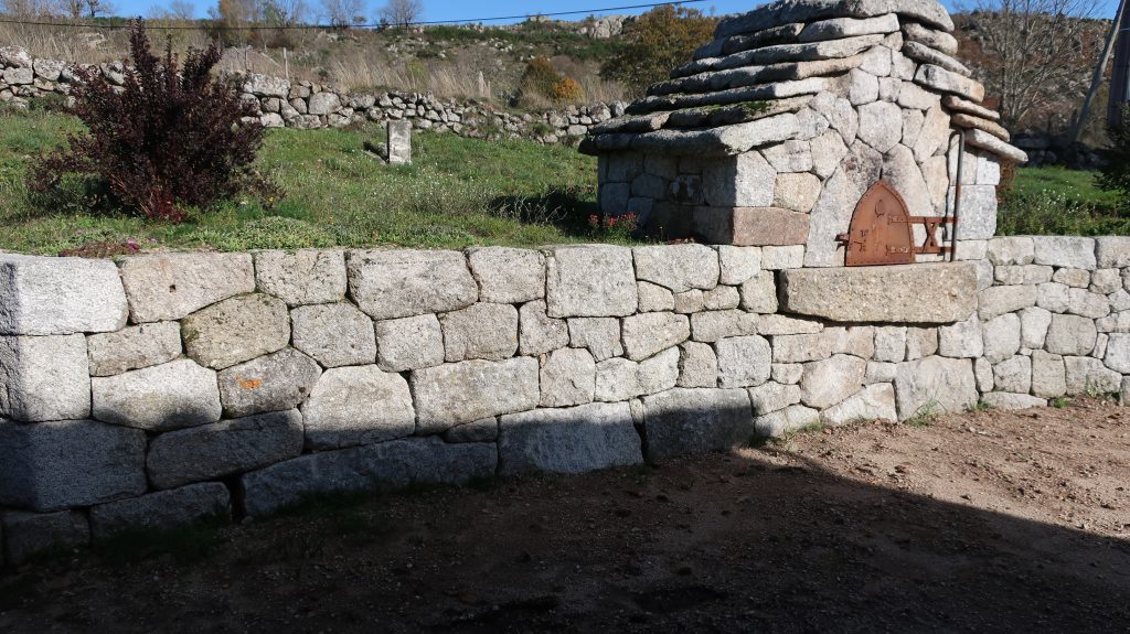 Création d’un mur de soutènement en pierre sèche et d’un four à pain maçonné à la chaux et à l’argile, avec des lauzes en granit.