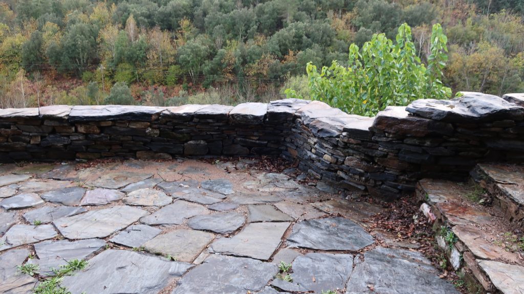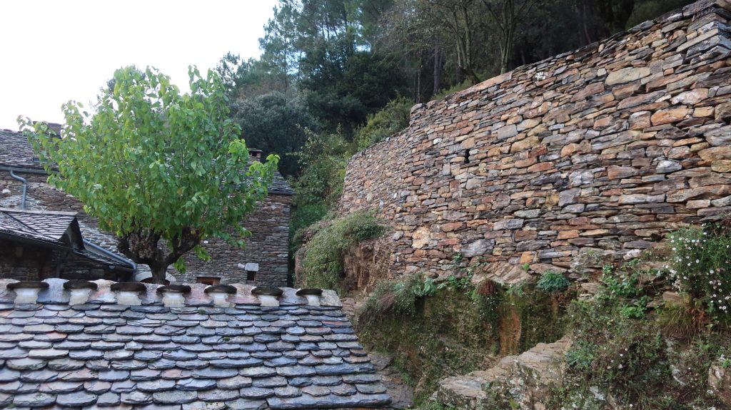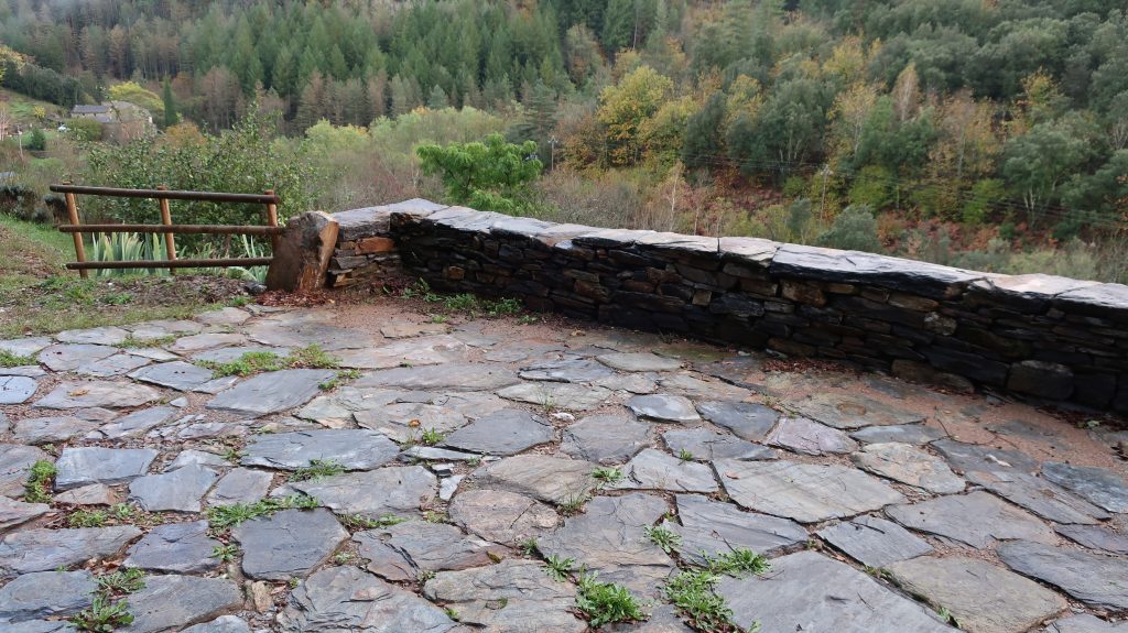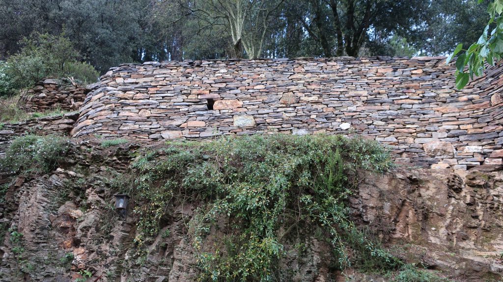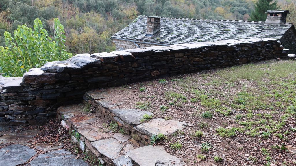 Restauration d’un mur de soutènement en pierre sèche en schiste de St Julien du Tournel, accès difficile.