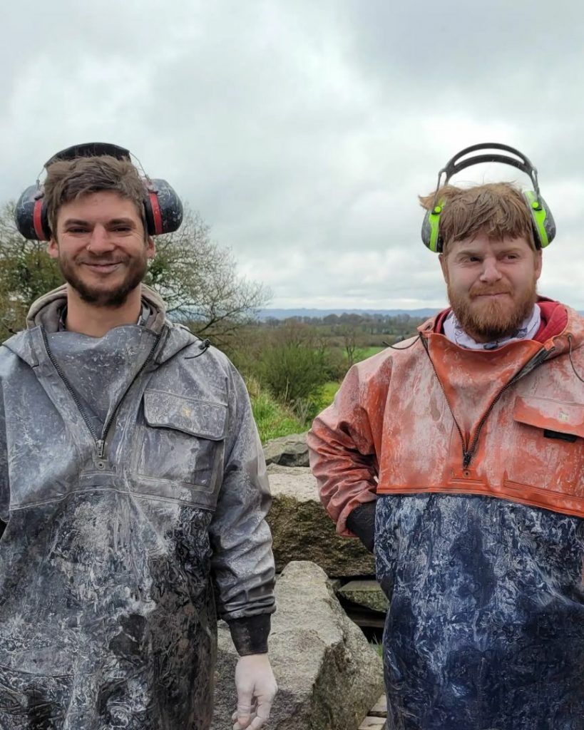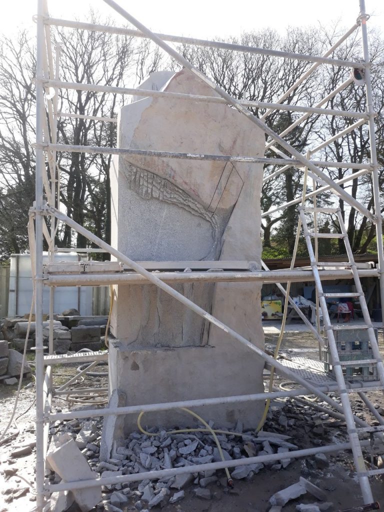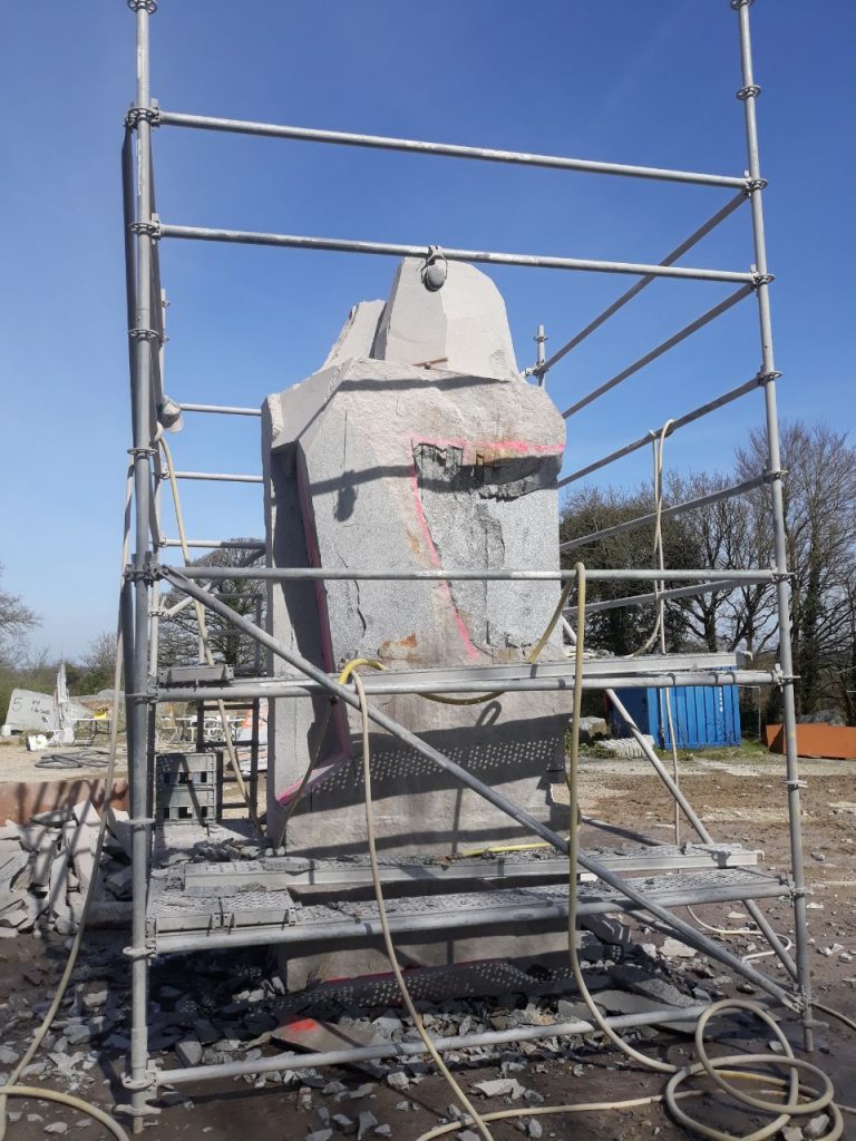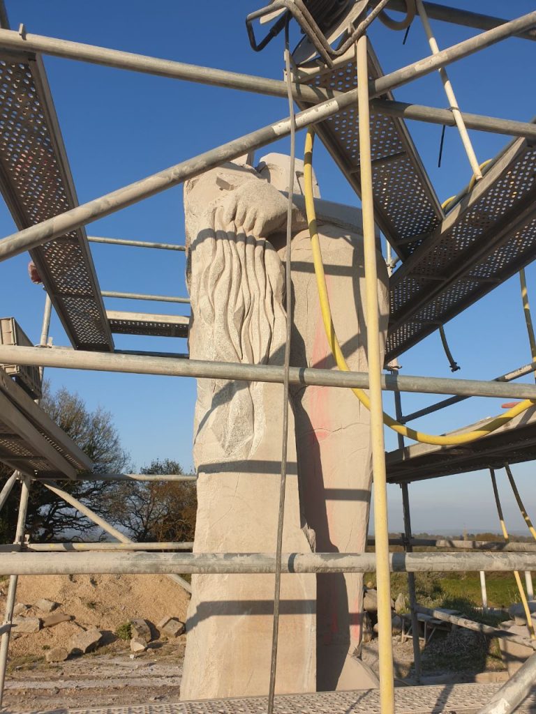 Sculpture réalisée en AVRIL 2023 à la vallée des saints par Jazon avec Lonan comme assistant.